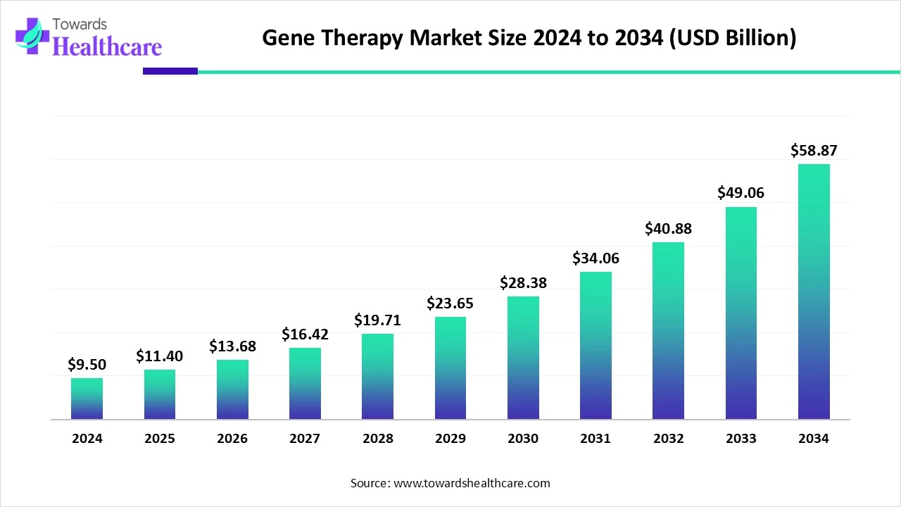Gene Therapy Market Size to Worth USD 58.87 Billion Rising at 20% CAGR by 2034 | Towards Healthcare
